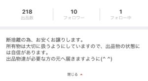 これまでに218個の不用品を出品・売却してきました。